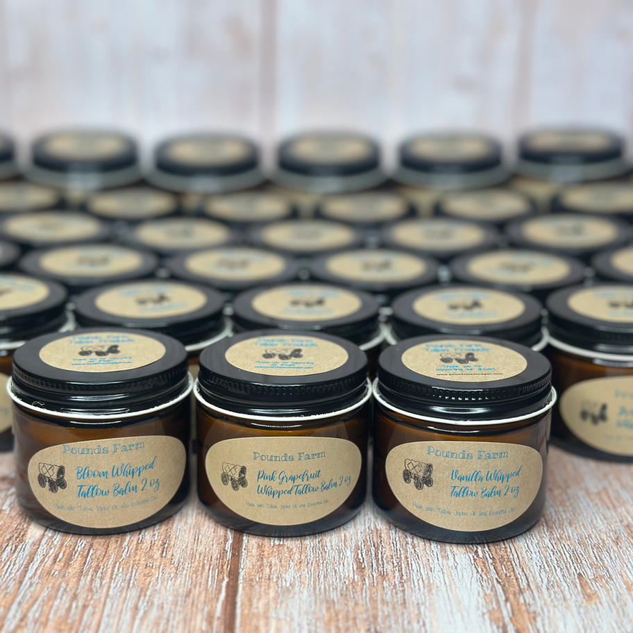 At Pounds Meat Wagon, we believe in the power of nature to nourish and heal your skin. Our tallow balm is crafted from high-quality tallow from the cattle we process, rich in essential vitamins A, D, E, and K, which are known for promoting healthy, glowing skin. We combine this natural powerhouse with other pure